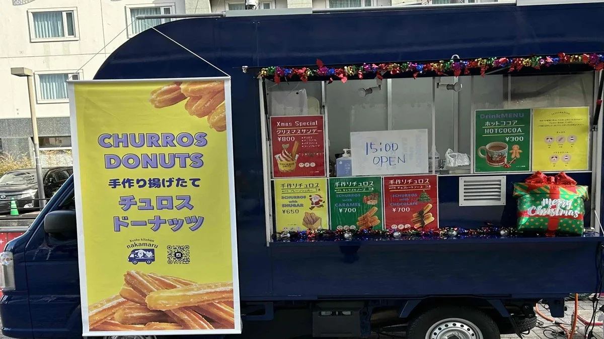 全日程を通して楽しめるメニューには、焼きたてのチュロスや京風のたこ焼き、そしてクリスマスに欠かせないホットワインなどが並びます。