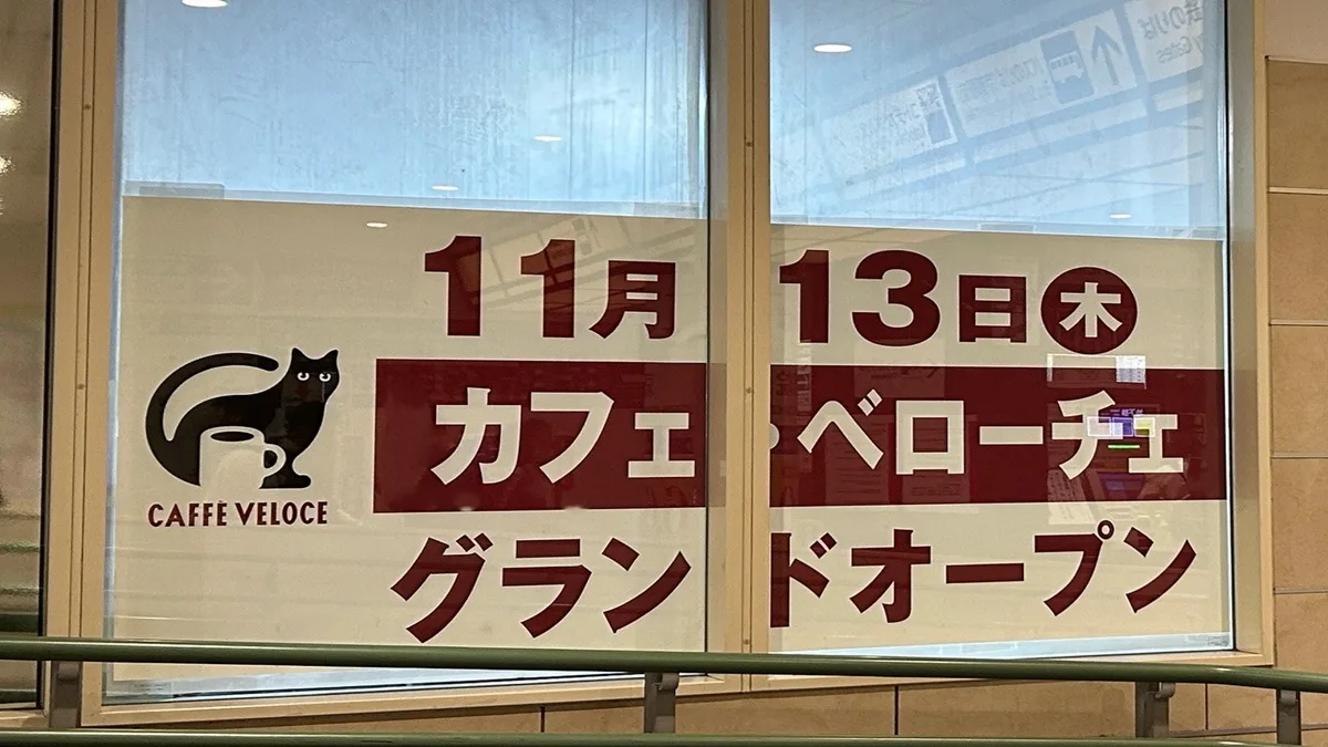 店舗前に「11月13日 カフェ・ベローチェ グランドオープン」と書いてありました。