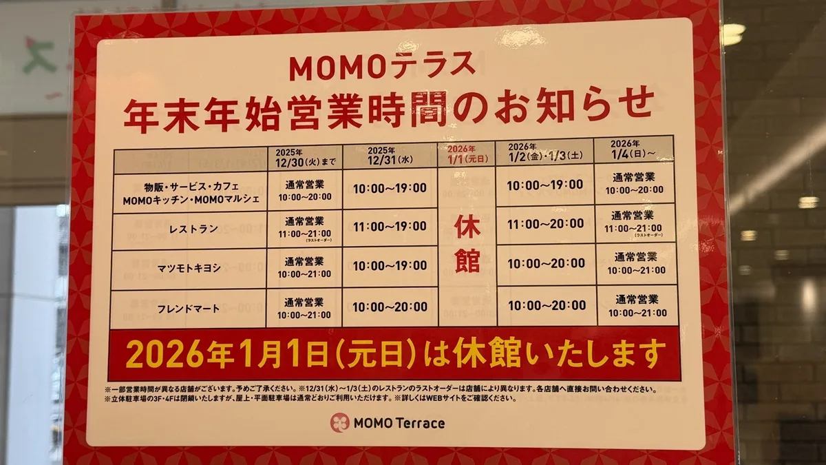 【2025-2026年】1月1日は休館|MOMOテラス年末年始の営業時間